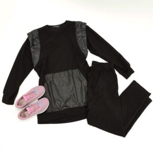 طقم ستاتي طويل قطعتين لون زهري فاتح