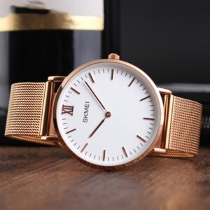 ساعة يد كوارتز ستانلس من skmei للنساء لون بنفسجي