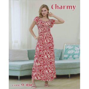فستان صيفي للنساء لون أسود مورد ورود صغيرة