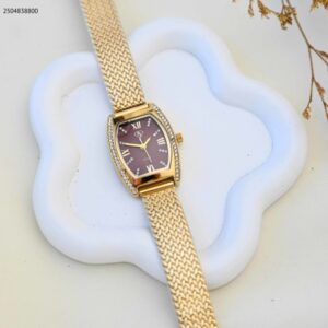 ساعة يد نسائية أنيقة لون ذهبي واحمر