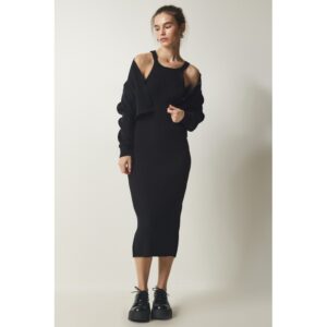 فستان قصير بأكمام طويلة لون أسود وأبيض