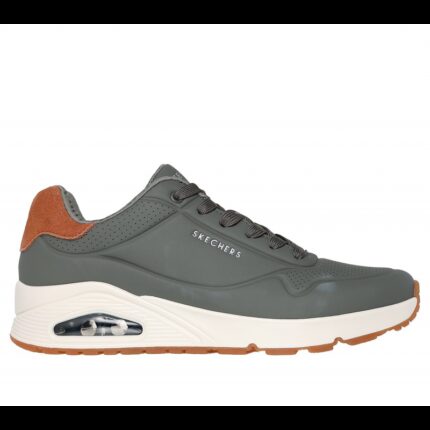 Skechers Men’s Uno – Suited On Air Shoes – حذاء سكيتشرز أونو- سوتيود أون اير للرجال لون زيتي ونعل أبيض