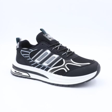 بوت سبورت رجالي لون رمادي وأبيض وأسود