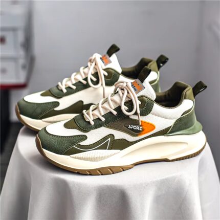 حذاء رياضي للرجال لون أبيض وأخضر