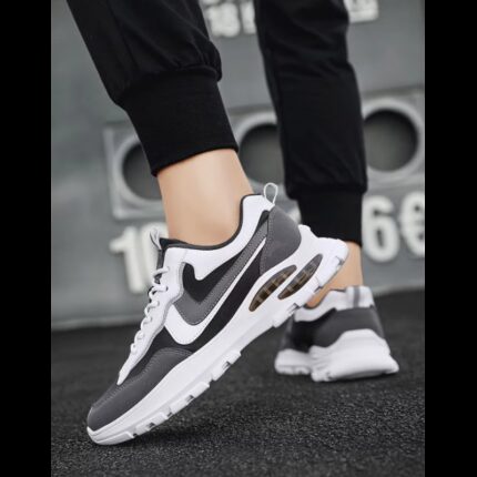 حذاء رياضي للرجال لون أسود ورمادي ونعل أبيض