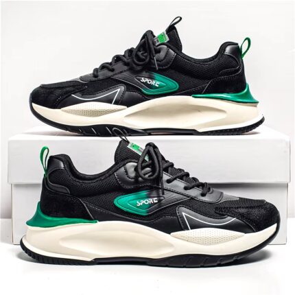 حذاء رياضي للرجال لون أسود وأخضر ونعل أبيض