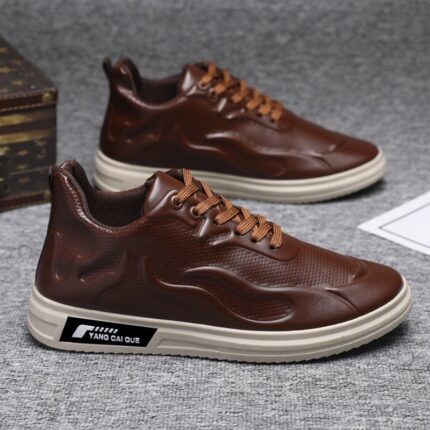 حذاء كاجوال رياضي جلد للرجال لون بيج- Fashion Mens Running Shoes