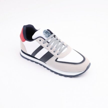 حذاء يو اس بولو جلد للرجال لون أبيض وكحلي وبيج
