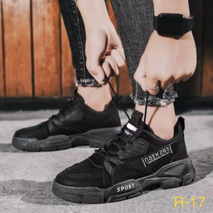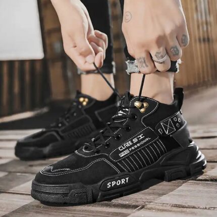 حذاء رياضي للرجال لون أسود- Fashion Men’s Luxury Sport Mid-high Shoes