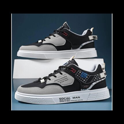 حذاء فاشن رياضي لون رمادي- Fashion Men’s Sport Mid-high Top Lace-up Shoes
