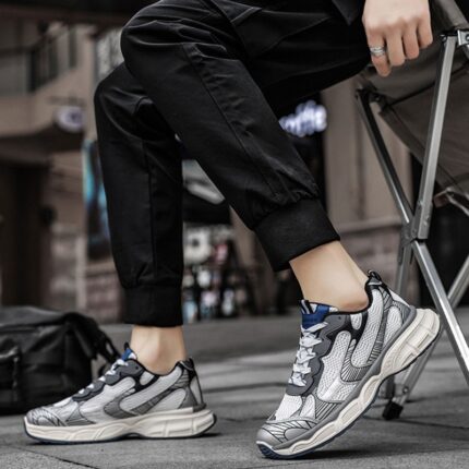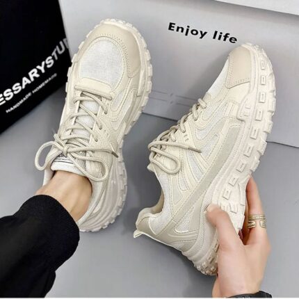 حذاء رياضي بتصميم شبكي ونعل سميك للرجال لون بيج- Fashion Mens Sneakers Breathable Running Shoes
