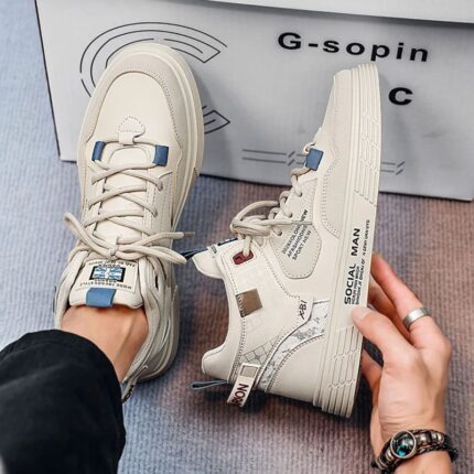 حذاء رياضي للرجال لون بيج- Fashion Men’s Luxury Sport Mid-high Shoes
