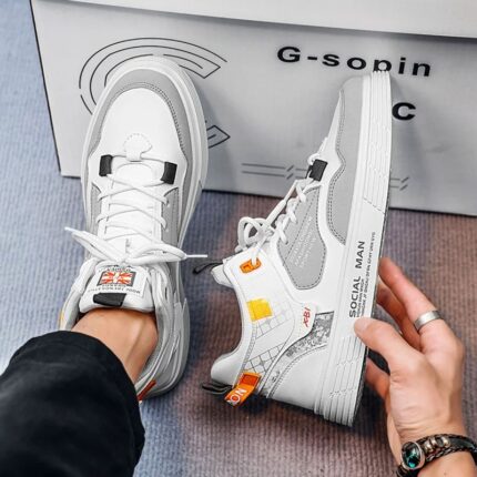 حذاء رياضي جلد غير رسمي للرجال لون أبيض ونعل أبيض