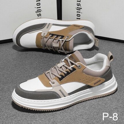 حذاء كاجوال رياضي جلد لون رمادي وبني