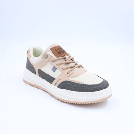 حذاء كاجوال رياضي جلد لون أبيض وبني