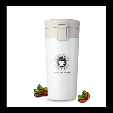 كاسة ستانلس مع غطاء حجم 380 مل لون أبيض