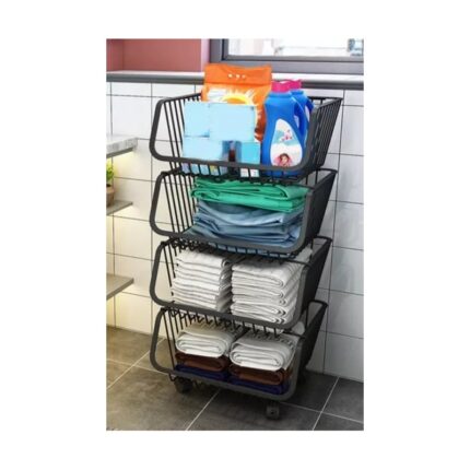 سلة خضار معدن مع عجال 4 طبقات