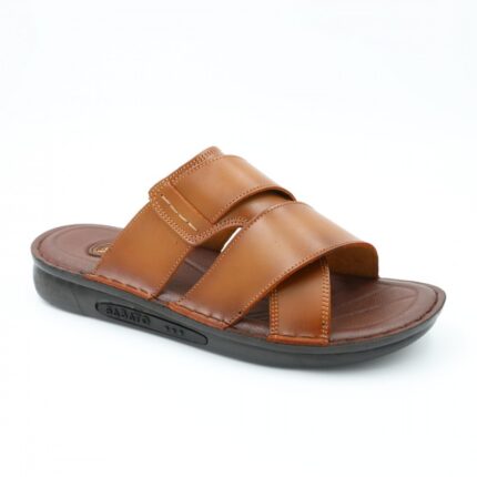 شبشب جلد طبيعي للرجال لون بني