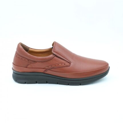 حذاء كاجوال طبي جلد بدون رباط للرجال لون عسلي غامق