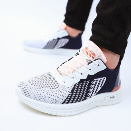 حذاء فاشن كاجوال نسيج للرجال لون أبيض ونعل أبيض