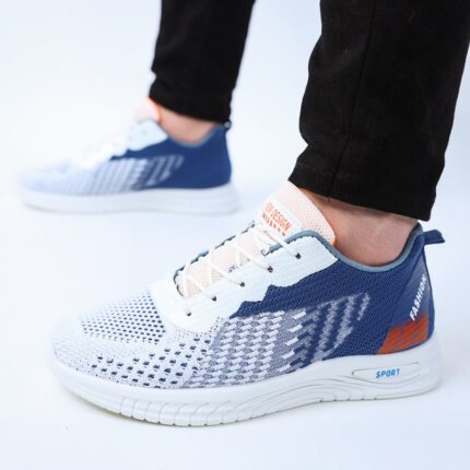 حذاء فاشن كاجوال جلد ونسيج للرجال لون أزرق ونعل أبيض