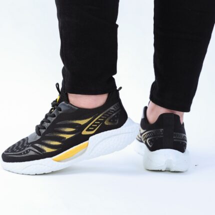 حذاء فاشن كاجوال نسيج للرجال لون أسود ونعل أبيض