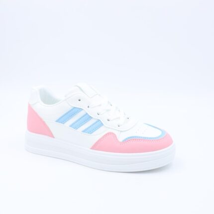 حذاء رياضي كلاسيك جلد للنساء لون أبيض وزهري