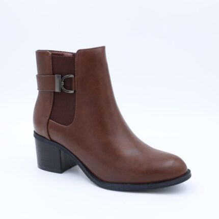 جزمة نسائية ساق متوسط الطول بكعب عريض لون بني قهوة