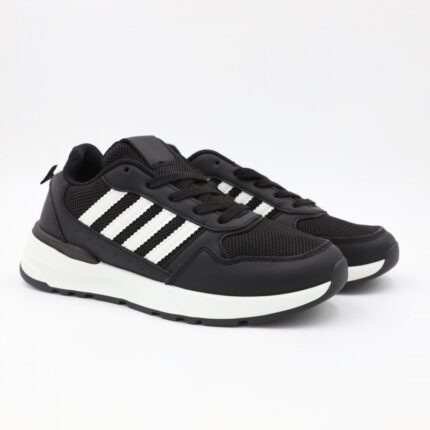 حذاء رياضي شبابي لون أسود ونعل أبيض