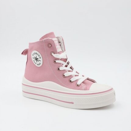 حذاء كاجوال ساق طويل ستاتي لون زهري وأبيض