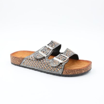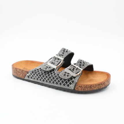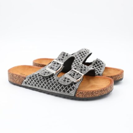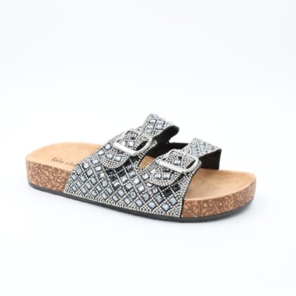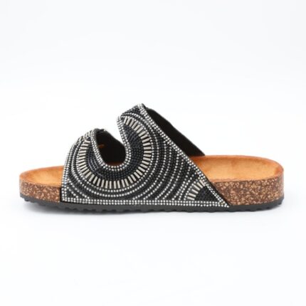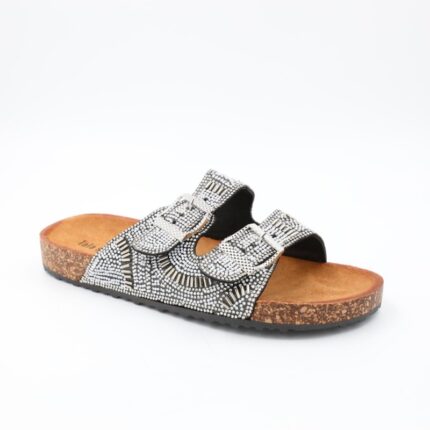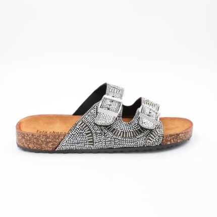 شبشب ستاتي مزخرف للنساء لون فضي وأسود