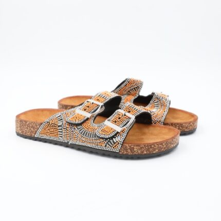 شبشب ستاتي مزخرف للنساء لون عسلي