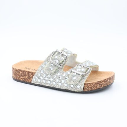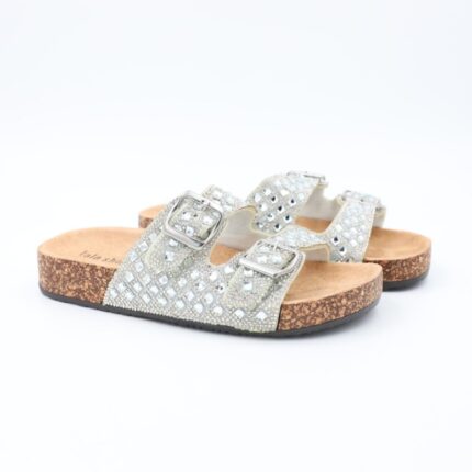 شبشب ستاتي مزخرف للنساء لون فضي وكاكي