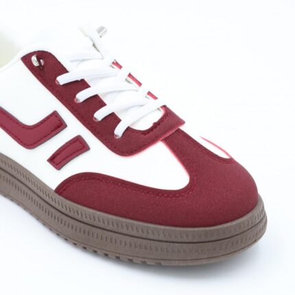 بوت جلد رياضي للنساء لون أبيض وعنابي
