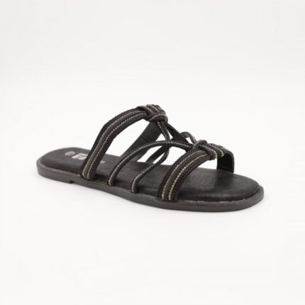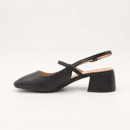 حذاء كعب ستاتي عريض متوسط مفتوح من الخلف لون اسود