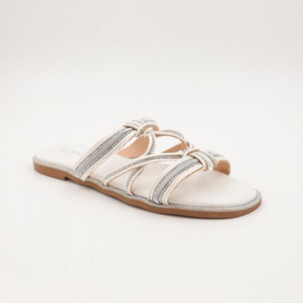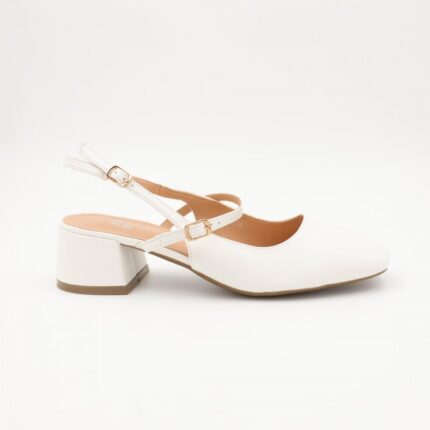 حذاء كعب ستاتي عريض متوسط مفتوح من الخلف لون ابيض