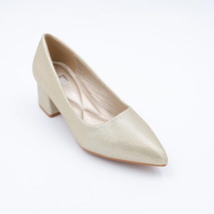 حذاء كعب ستاتي عريض متوسط لون ذهبي