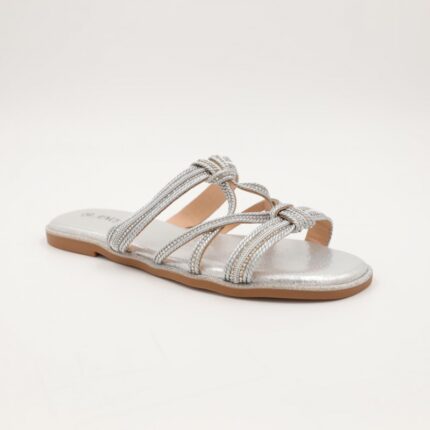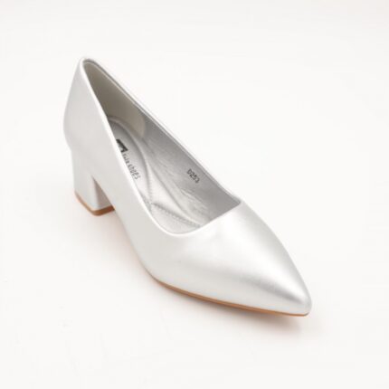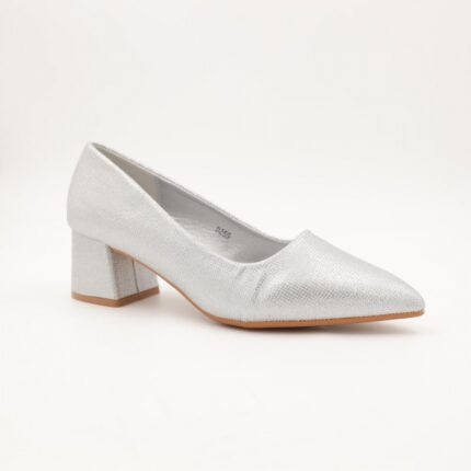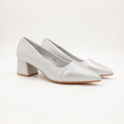 حذاء كعب ستاتي عريض متوسط لون فضي