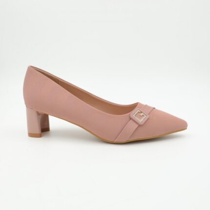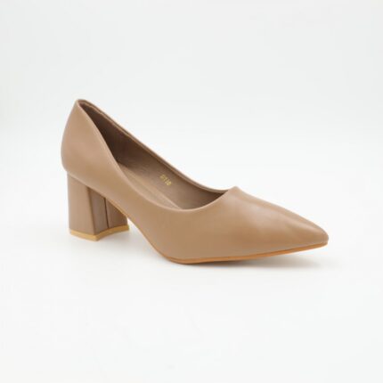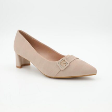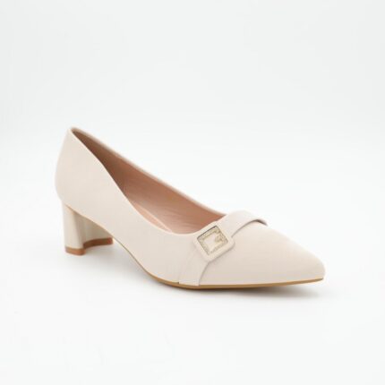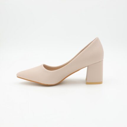 حذاء كعب متوسط نسائي بكعب عريض بتصميم لون بيج