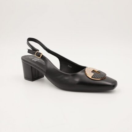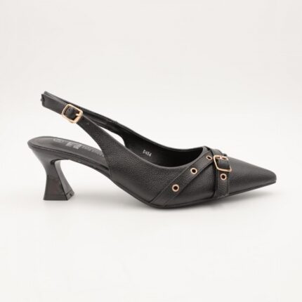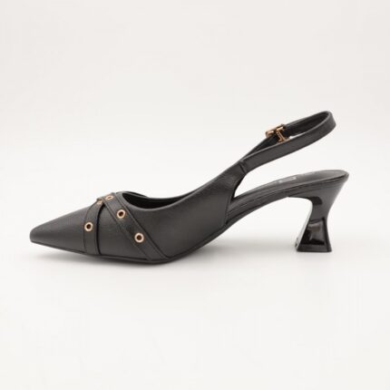 حذاء كعب متوسط نسائي بكعب رفيع وحزام مزخرف بتصميم مفتوح من الخلف لون اسود