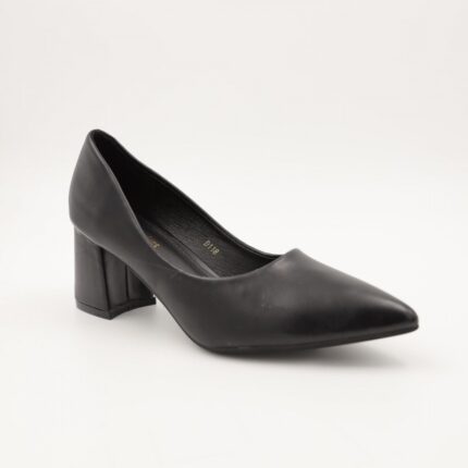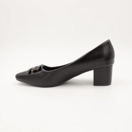 حذاء كعب متوسط نسائي بكعب عريض بتصميم لون اسود