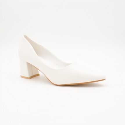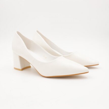 حذاء كعب رفيع متوسط للنساء لون ابيض
