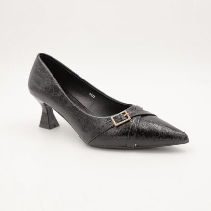 حذاء كعب رفيع متوسط للنساء لون اسود