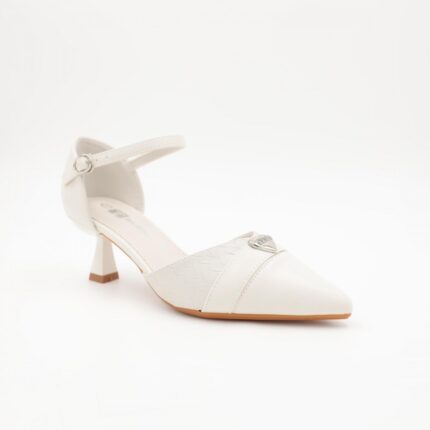 حذاء كعب متوسط بتصميم قلب مفتوح من الخلف للنساء لون ابيض