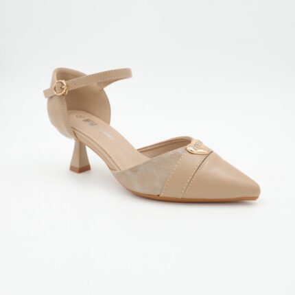 حذاء كعب متوسط بتصميم قلب مفتوح من الخلف للنساء لون بيج