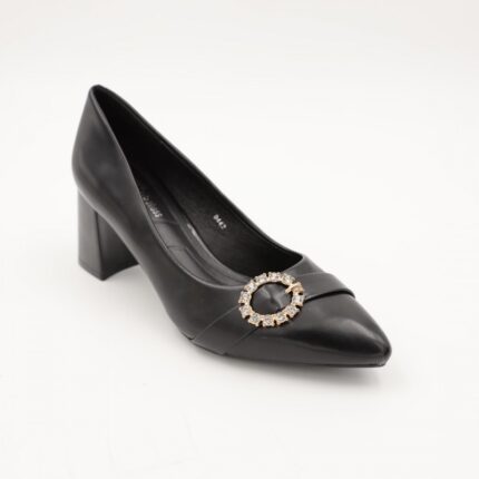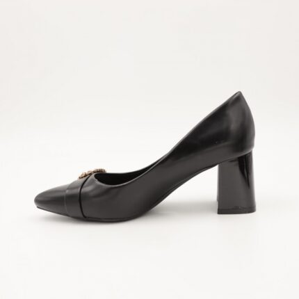 حذاء كعب متوسط رفيع نسائي بتصميم كلاسيكي مفتوح من الخلف لون اسود