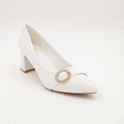 حذاء كعب متوسط رفيع لون ابيض
