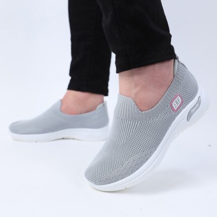 حذاء سبورت بدون أربطة للنساء لون رمادي ونعل أبيض