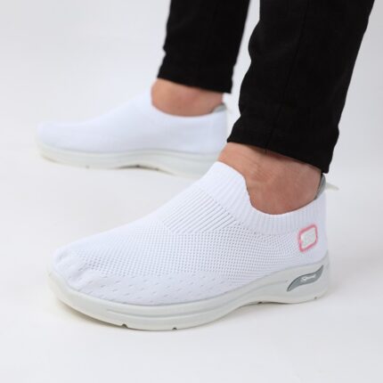 حذاء سبورت بدون أربطة للنساء لون أبيض ونعل أبيض