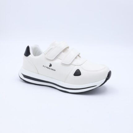 حذاء جلد بنعل مريح وعملي رياضي برباط وهمي لون أبيض